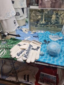 Cuando le pregunto por la pieza, qué en lo personal considera como más valiosa o representativa, cuenta la siguiente anécdota: “hay una casaca Nanque del ascenso de 1982 que le tengo mucho aprecio por la forma en que la obtuvimos. Esperábamos el colectivo 318 en Laprida y Acevedo a eso de las cinco de la tarde, cuando mi hermano ve a un botellero con esa camiseta que no teníamos. En ese momento, en medio de la calle y entre bocinazos y gritos de la gente, mi hermano le dice, – ¿No me la vendes? -, señalando la remera, a lo que el pibe se niega. Entre tire y afloje por su valor monetario, finalmente logra comprarla. El botellero le dice – pero yo me voy a quedar en cuero – y ahí me hermano se saca la que él tenía y se la entrega. Cuando llega a casa con el torso desnudo, mi mamá le dice – te robaron -, y ahí le tuvimos que explicar que había sido para conseguir esa prenda que la traía en la mano, porque era imposible tenerla puesta a causa del aroma añejo de varias jornadas de trabajo intenso que la perfumaban”.
